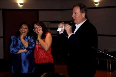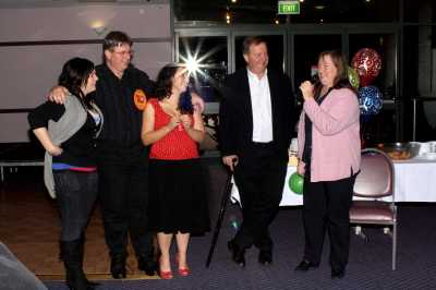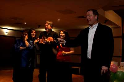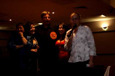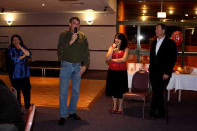 First of all let me say we had a bit of a hiccup with the camera. It was brand new to us and some setting caused the pictures to not turn out as they should have. These are the best of the bunch. So if anyone has pictures of the night, please send them along. I'd be particularly grateful for any shots of the tables. In the meantime I'll try to clean up what I have with Photoshop...but I'm not very good at that, so it'll take some time.