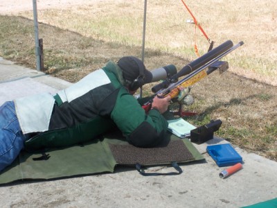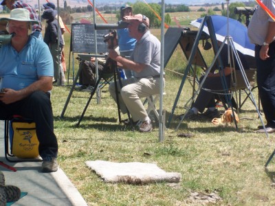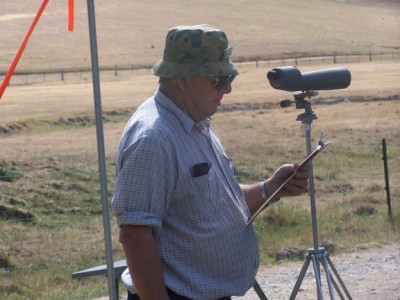 Peter Hill and Sandy watch Adrian Abbott get down at 1200yds.