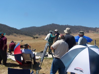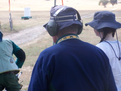The Queenslanders; Peter Hill twiddles the sights for John Kielly assisted by Jenni Hausler.