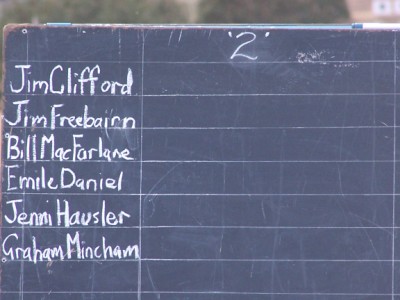 The Freebairn Teams winners; Bill Freebairn (finally broke his duck!) Jim Clifford, Jim Freebairn presenting, Norm Linehan and Phil Bain.
